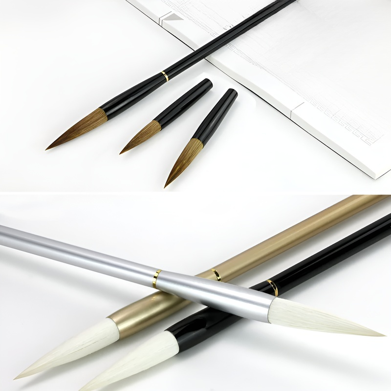 พู่กันจีนพร้อมกระบอกโลหะพกพา